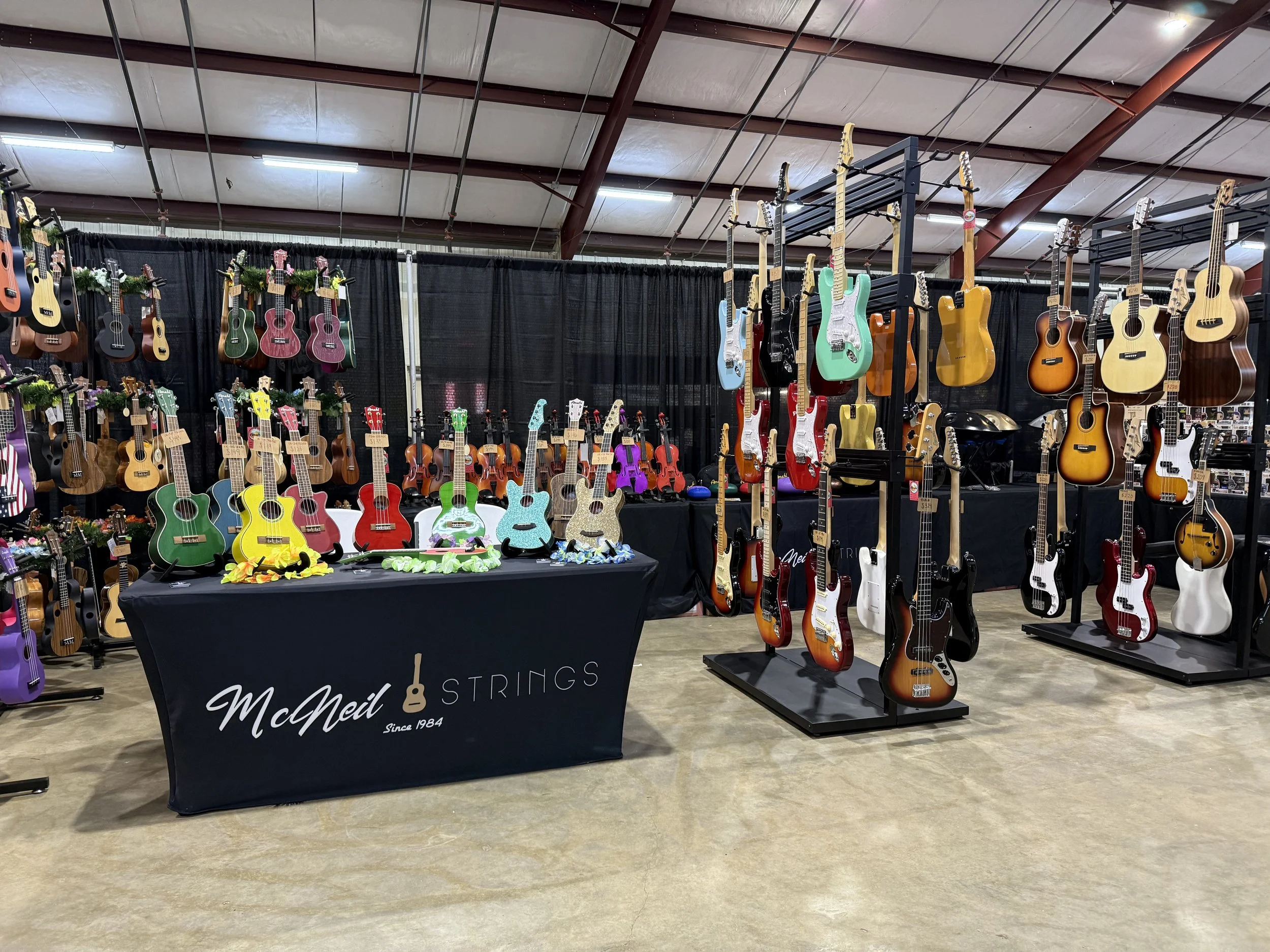 We made it back to Deridder, and the famous Watermelon Festival. The weather was not ideal but everyone brought their umbrellas and had a great time. The food trucks served a great variety of delicious Louisiana food. We were able to display many more instruments this year, with the Watermelon Ukulele remaining the star of the show! Thank you to all who came out to support the festival and McNeil Strings!